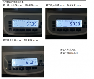 | 產(chǎn)品狀態(tài); | 重量 | 測(cè)試溫度 | 測(cè)試時(shí)間 | 固含量結(jié)果 | 水分結(jié)果 |