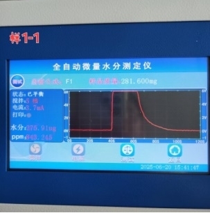 - 在儀器上輸入打入樣品的重量,等待測(cè)試結(jié)束,儀器會(huì)自動(dòng)計(jì)算樣品的水分含量。