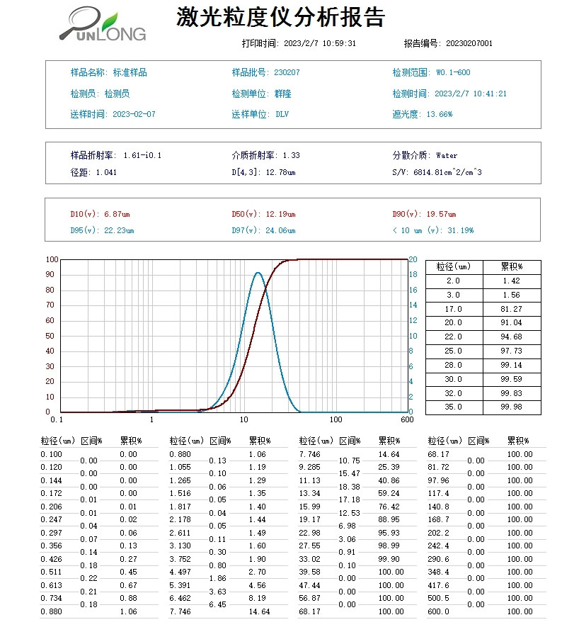 | 統計方式 | 體積分布和數量分布,以滿足不同行業對于粒度分布的不同統計方式 |
