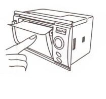 第一步:按下圓按鈕將打印機前蓋打開;把剩下的紙芯取出,如下圖: